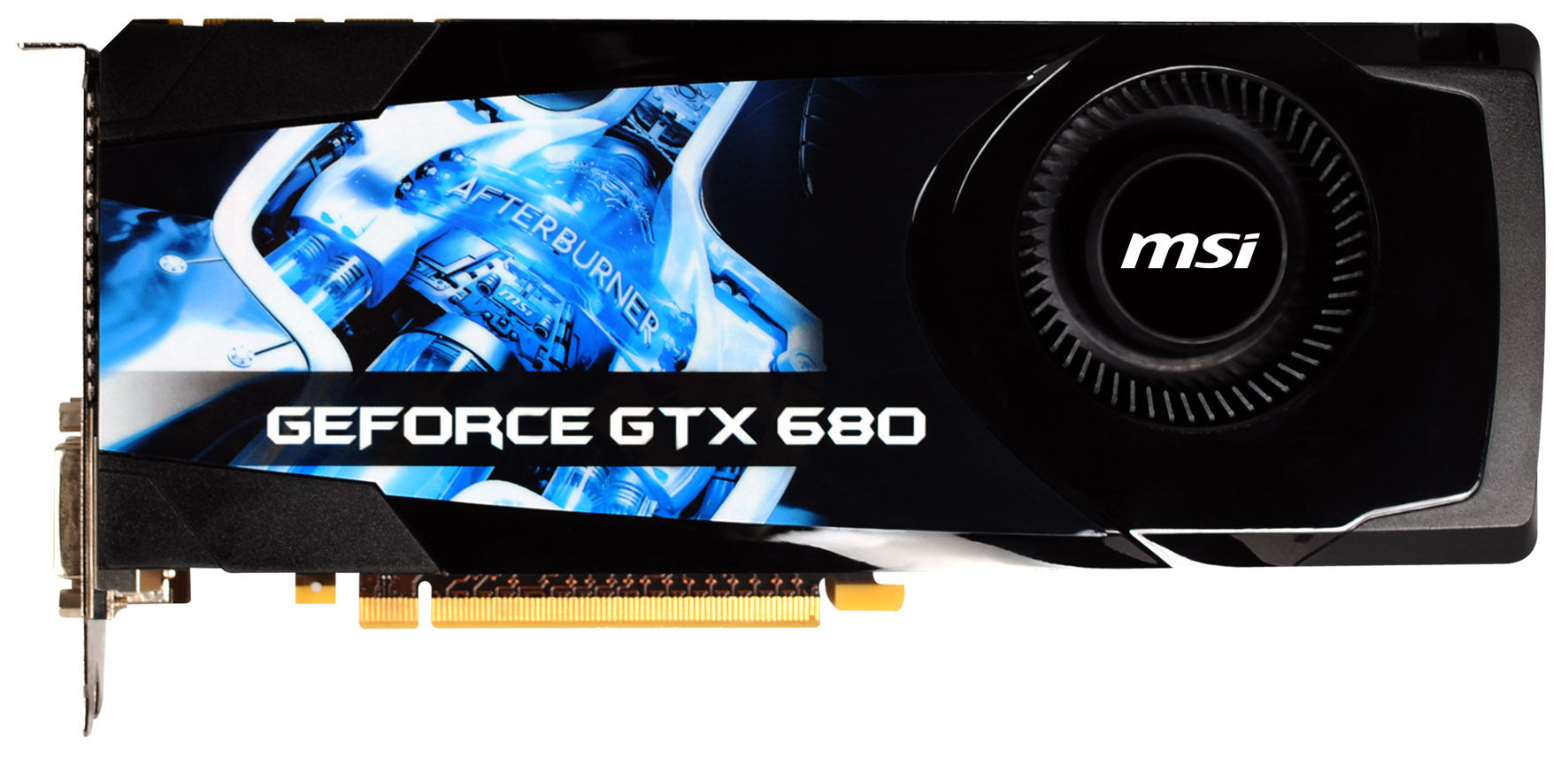 MSIが発売するGeForce GTX 680製品は「MSI N680GTX-PM2D2GD5」だ(写真1)。CUDAコア数が1536ユニットに8ユニットのSMXを持つ。電源は6ピン×2で動作する。消費電力は最大195ワットとハイエンドGPUらしいが、これでもGeForce GTX 580と比べると低消費電力になっている。ほぼリファレンスデザインを踏襲したカードデザインになっている。GPUコアの黒くは1006MHz、GPUBoostで1058MHzまで自動でクロックアップが行われる。グラフィックスメモリーは2Gバイト(GDDR5)で付属ソフトのTweak機能である「Afterburner」を使って、さらなるクロックアップも可能だ。