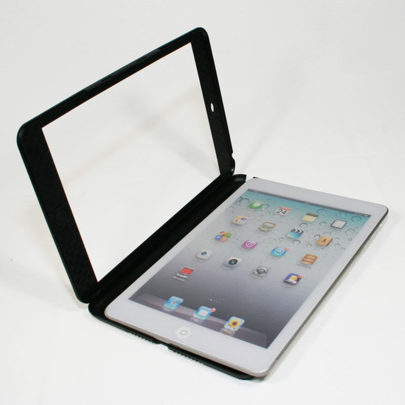 iPad miniをケースに装着する方法は、特に難しいことはない。ケースは前面の額縁側が大きく開くようになっているので、その状態で上下を間違えないようにiPad miniをセットする。ホームボタンや背面のFaceTime HDカメラ、前面のiSightカメラ位置をケースの穴と合わせるようにすればいい。本体をケースに収めたら、あとはフタをする感じで閉じればOKだ。パチンといった感じで固定される。