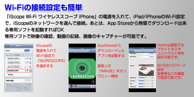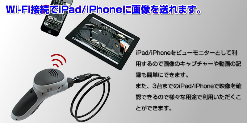 ■Wi-Fi接続でiPad/iPhoneに画像を送れるワイヤレススコープ