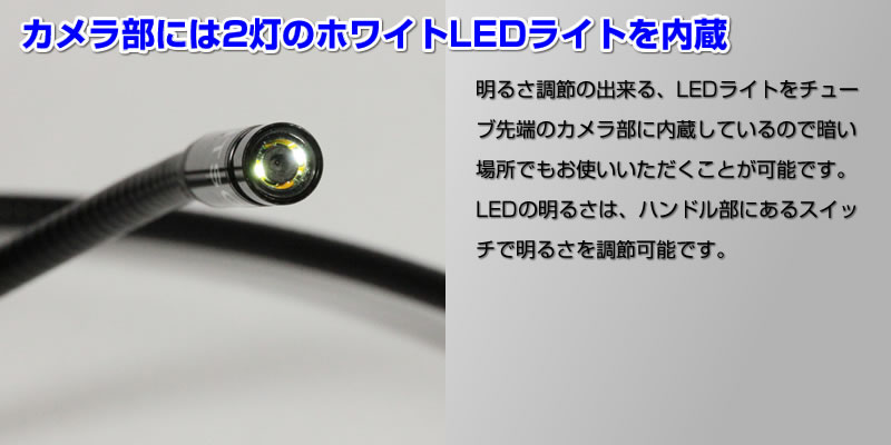 ■暗い場所の捜索も安心!カメラ部に白色LEDライトを2灯内蔵