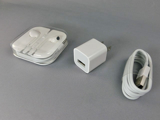 | 「iPhone 5s」本体のほかに、Apple EarPods with Remote and Mic、収納トラベルケース、USB電源アダプタ、Lightning - USBケーブルなどが同梱される。 |