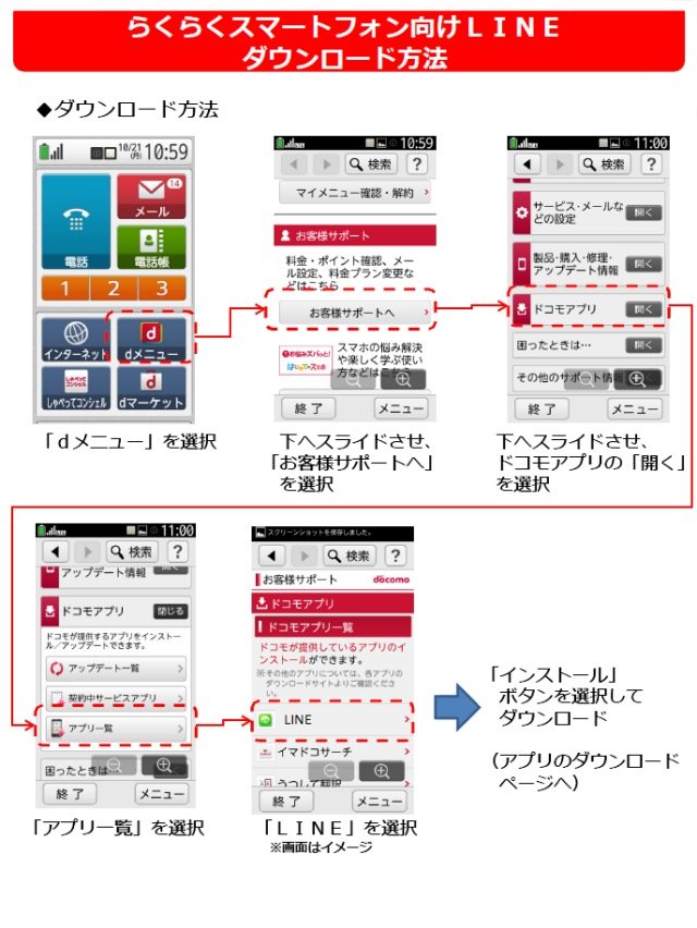 ※らくらくスマートフォンプレミアムユーザーはGoogle playよりLINEアプリがダウンロードできるため対象外