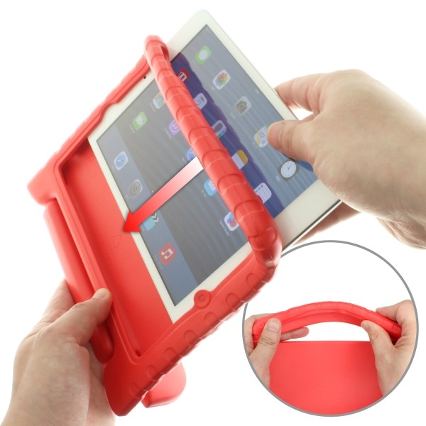 7~8インチタブレットで人気といえばやはりアップルのiPad miniだろう。そのiPad miniを可愛らしく変身させるハンドル付きケースを紹介しよう。衝撃を吸収するやわらかいEV素材製なのでこれを装着することで、ある程度の衝撃に耐えることができるようになる。