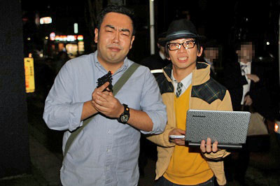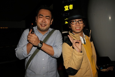 | 深夜バスの車内に登場した、お笑いタレント「どきどきキャンプ」 |