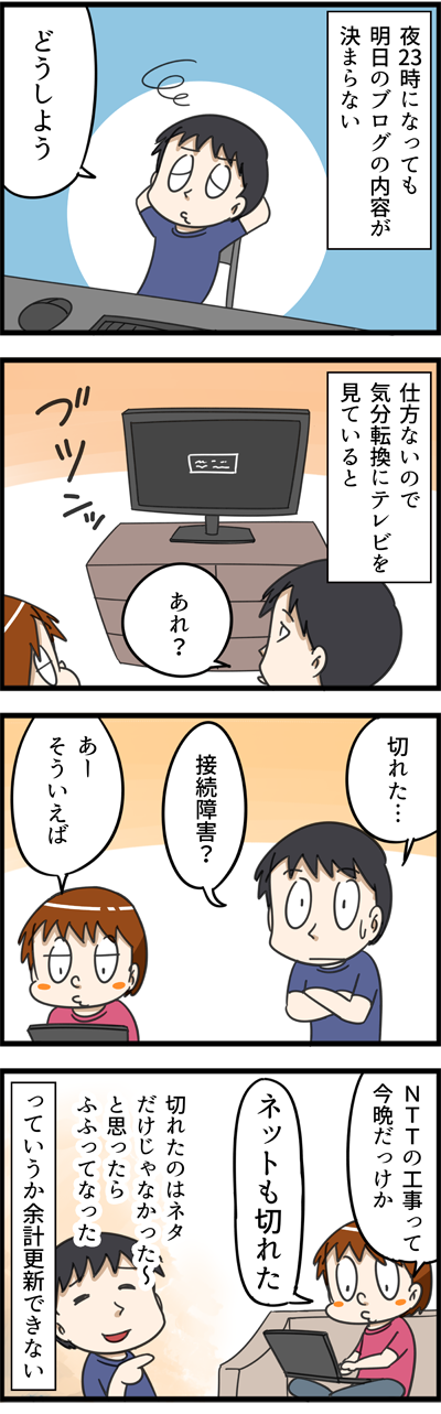 思わずふふってなった夜 2018年09月29日 ちなみに回線の不通は十数分で復旧してくれまして、色んな意味で光ケーブルのメンテナンス工事に救われました。危ないところをありがとうございました。いつもブログランキングへのクリックありがとうございます!人気ブログランキングへとても励みになっておりますので、よ ... 続きを読む