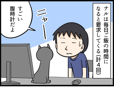 ご飯はくれるもの?それとも自分で探すもの? 2020年01月28日 うちでは早朝と12時、18時、0時と約6時間おきに分けてご飯をあげているんですが、ナルはこの時間になると起きてきてご飯を主張します。ネコの腹時計って凄いですね。一方カイの方は、たえず美味しそうな匂いがしたらくわえて持っていってしまうので、晩御飯の用意をしている ... 続きを読む
