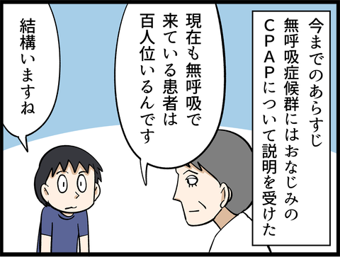 無呼吸症候群の検査結果⑤ 2024年07月29日 ちなみにCPAPの費用は月額4500円とのことでした。このCPAPという機器は先日もコメントでいただいたり、芸能人で使用を公言されている人もいるので結構ご存じの方もいるかもしれないですね。しかしこれはあくまで対処療法で、原因を治療するわけではないので、ずっと使い続け ... 続きを読む