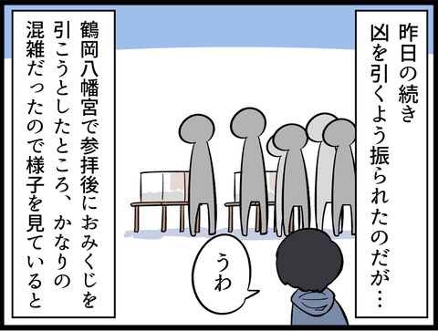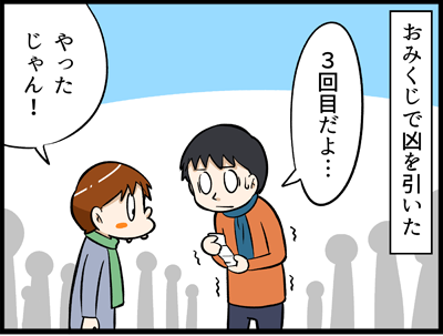 我が家のおみくじ事情② 2024年02月02日 バッチリ凶を引く事ができました。中途半端に中吉とか引かないで本当に良かった。やはりここは凶を引いとかないと。凶を引いてこんなに楽しそうにしているのは恐らく我々だけでしょう。鶴岡八幡宮には凶、大凶を引いた人の救済措置もバッチリ。「凶運みくじ納め箱」に収めれ ... 続きを読む