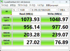 それでも、データ通信速度は最大10Gbpsの速度が問題なく発揮されるようです。前回と同じようにUSB 3.2 Gen2x2対応で、リード・ライトとも最大2000MB/sの通信速度を誇るSanDiskのポータブルSSD「Extreme Pro ポータブルSSD 2TB」を利用して通信速度をチェックしてみたところ、リード、ライトとも1000MB/s超えを確認しました。データ通信用の信号線が4本しか結線されていないため、USB 3.2 Gen2x2の速度は当然発揮できませんが、最大10Gbpsの速度が発揮される点は間違いないと言えます。