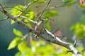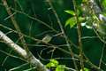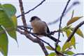NIKON1 @540mm トリミング; 葉桜の枝の青虫を咥えたヤマガラ