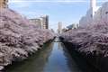 shuu2さん 目黒川 丸い高層ビルが中目黒駅あたり |