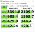 - 超高速PCI Express3.0x4インターフェイスを搭載し、シーケンシャルリードは最大3400MB/s、シーケンシャルライトは最大3000MB/s。