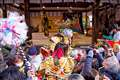 isoworldさん 群衆を掻き分けて(これは珍しい光景)石見神楽の演者(鬼たち)が入って来る |