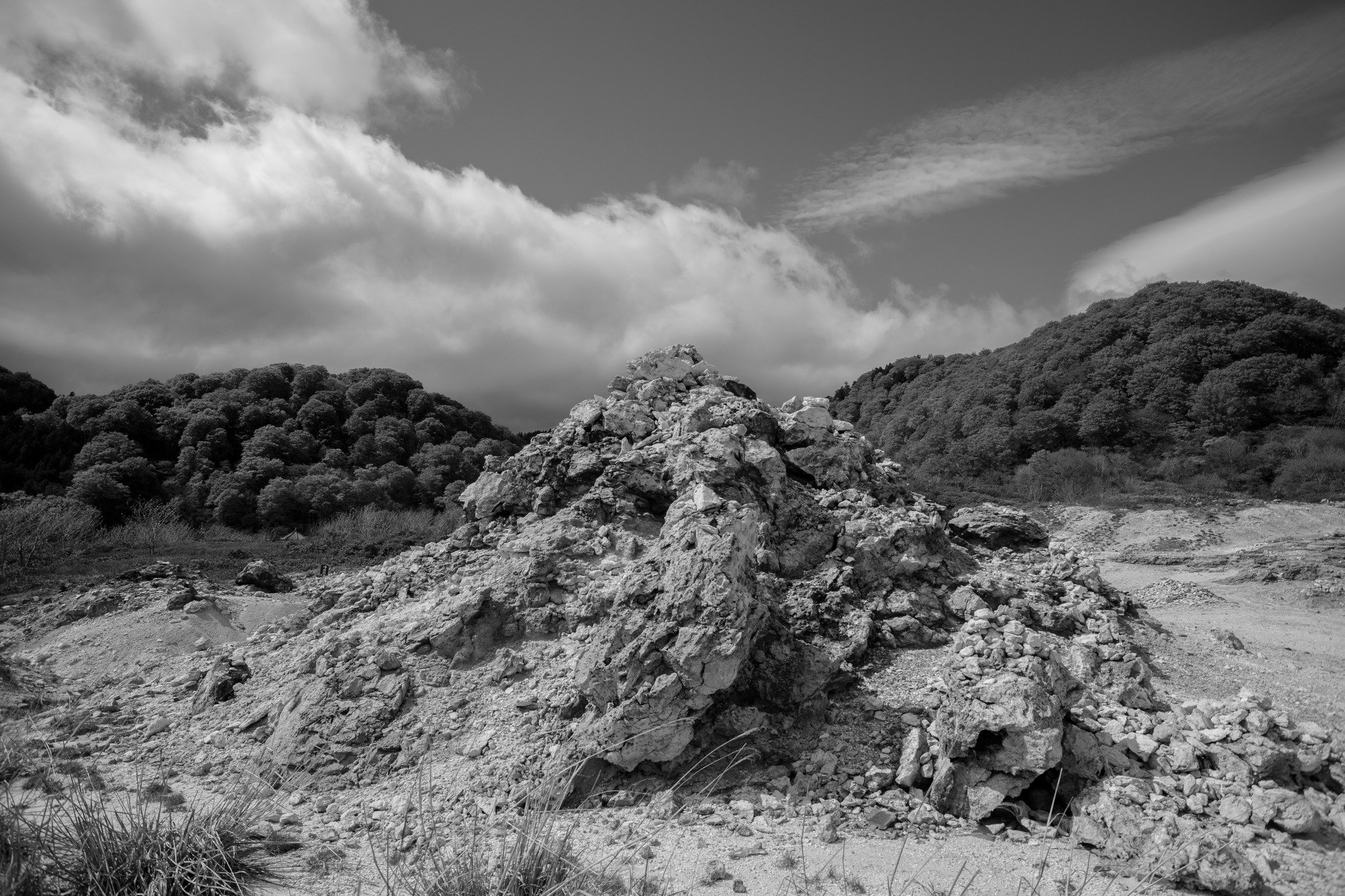 恐山は火山地帯であり、今でも火山活動によって荒涼たる風景が広がっている。ところどころ硫黄が噴出し、あたりには硫黄の匂いが漂っている。これが、地獄や黄泉の国を連想させるのは自然のことだけれど、火山国の日本には、似たような場所は、他にもいくつもある。