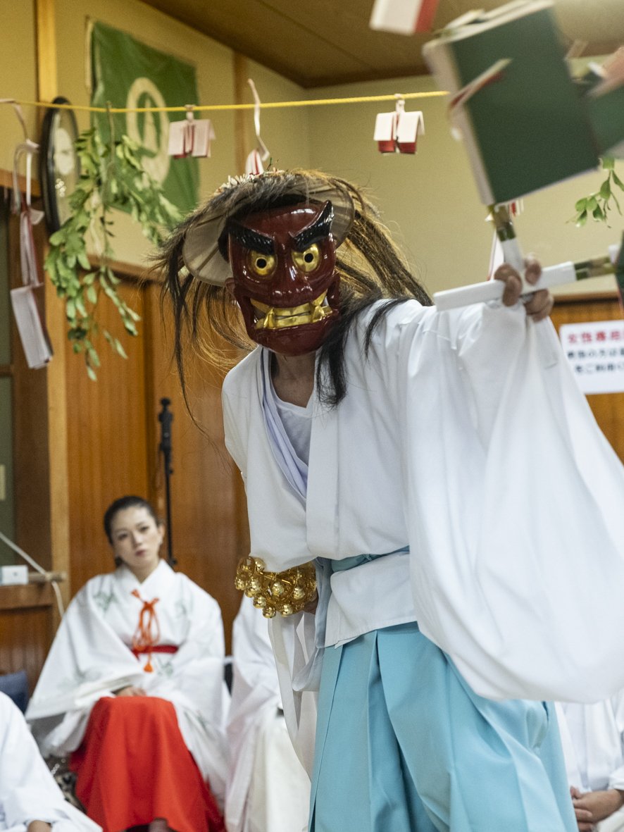 一般的な天孫降臨のストーリーを追うのではなく、ハイライトに据えられていたのは「タジカラヲ」の一人舞であった。これは白鳥神社の太夫に一子相伝で伝わる神聖な舞だという。明治維新の社家制度廃止を乗り越え、「太夫」が古神道の本質を継承し続けている点に、この地の精神的自律性がうかがえる。