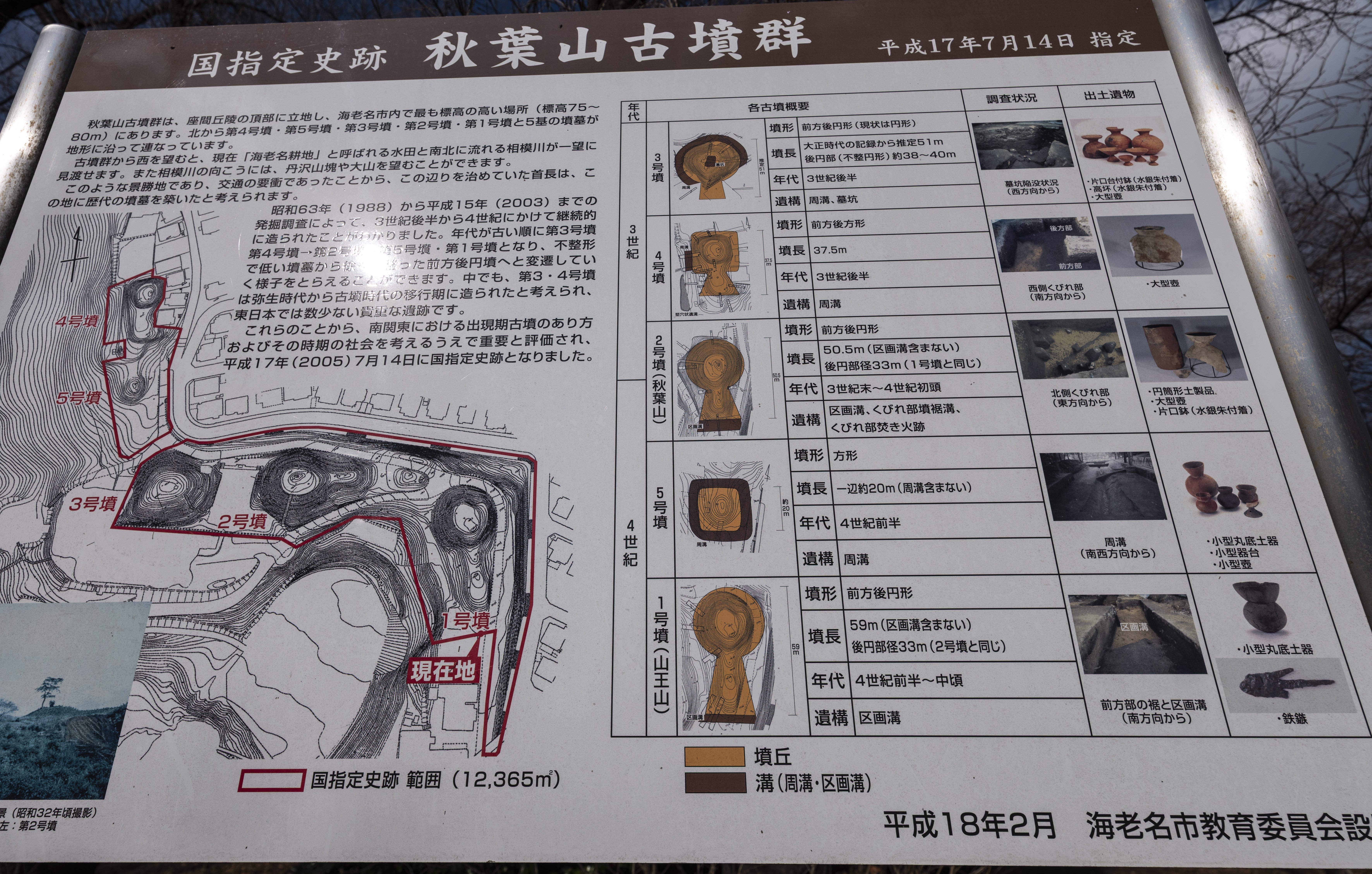 第二号墳の後円部頂上は標高84.6メートルで、これは海老名市の最高地点です。この古墳群は、周辺360度を見渡せるところに築かれているのです。