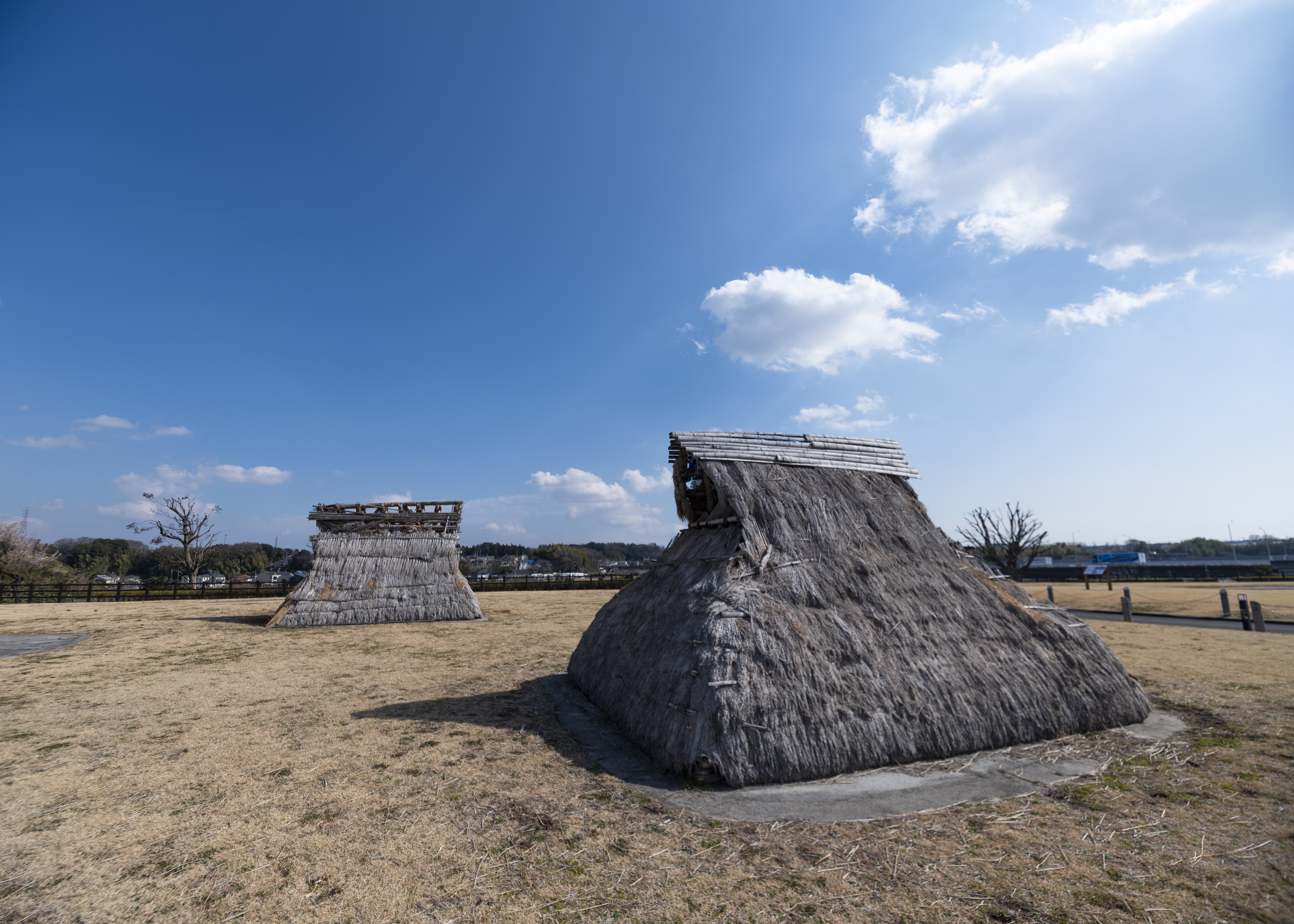 この相模川東岸の古代世界のなかで、もっとも古い痕跡を残しているのが、寒川神社の真北16kmほどのところの田名向原遺跡で、ここは石器時代(約20,000年前-18,000年前)から古墳時代までの複合遺跡です。