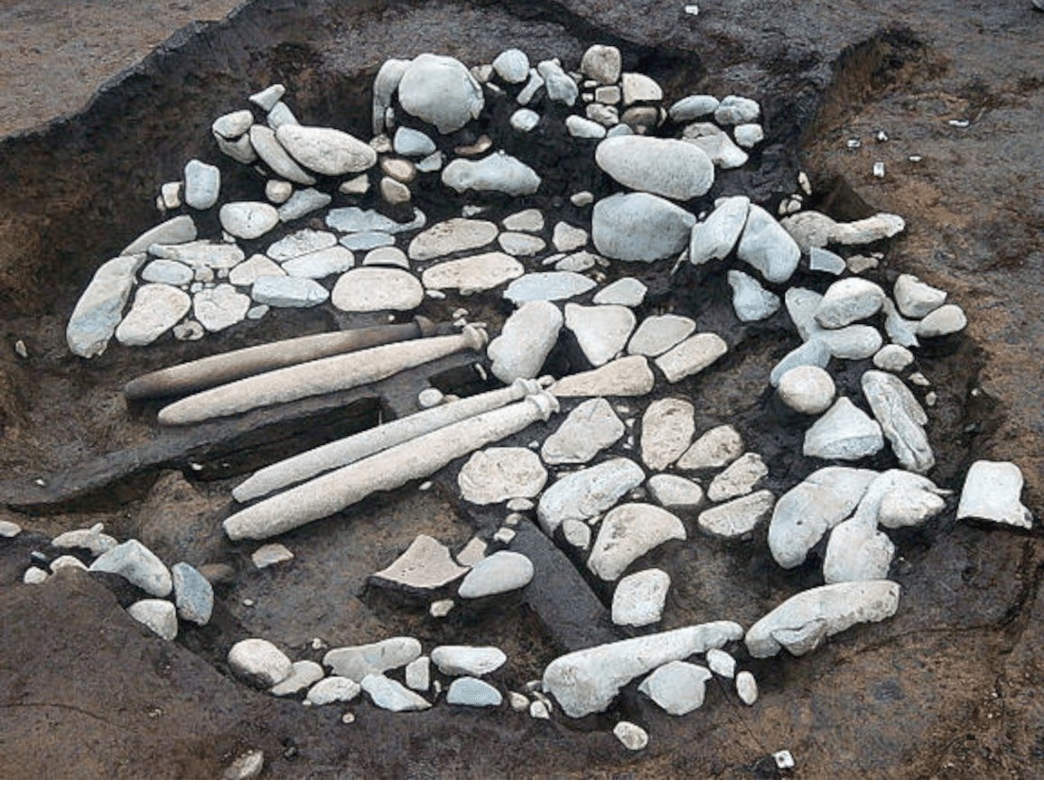 田端環状積石遺構を真西に相模川にそって行けば、甲府盆地の笛吹市に至ります。そして東北に10kmのところ、多摩川流域の国立には、全国的にも珍しい、4本の巨大石棒が一緒に埋められている緑川東遺跡があります。この縄文遺跡において、石棒と一緒に埋められている土器に、岡山と京都の様式のものが含まれています。その理由として、戦いの勝利者の戦利品であるという説明もありますが、この場所は祭祀空間ですから、遠く隔てた世界からもたらされたものには強い霊力が備わっていると、当時の人々が考えていたのかもしれません。