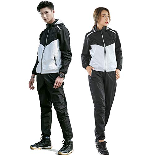 Fitvc サウナスーツ メンズ レディース 男女兼用 洗える おしゃれ ダイエットウェア ストレッチ ダイエット 洗濯可 (ブラックと ホワイト, 3XL)