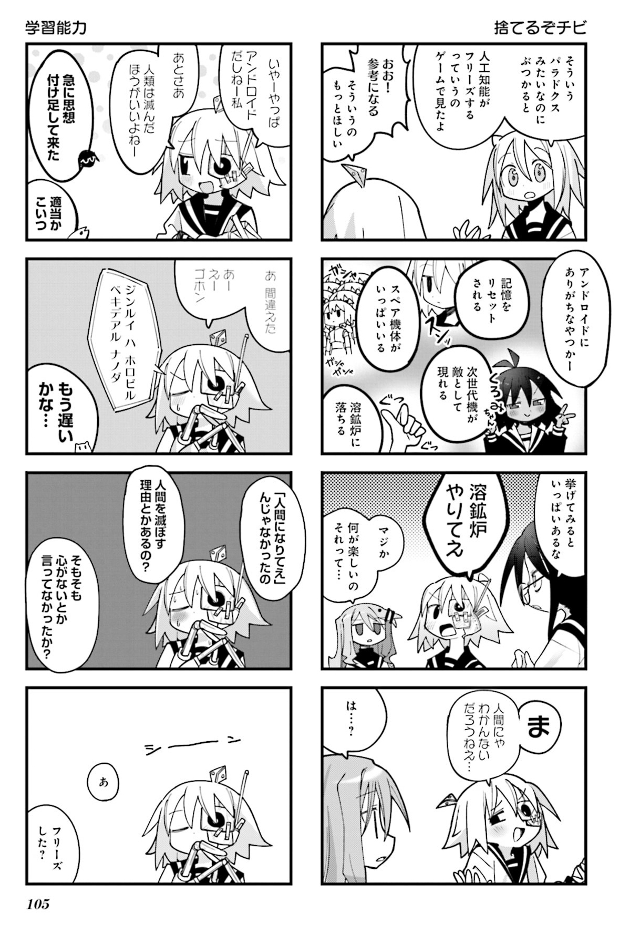 デフォルメの強い絵柄とトーン処理の少なさが相まって、この2キャラの区別に若干の弊害を感じる