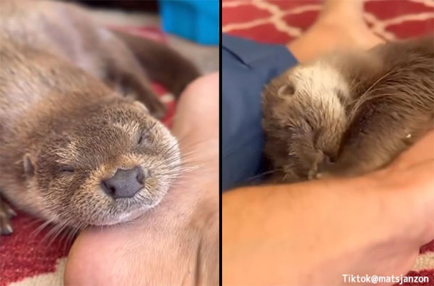 スイスに住むマッツ・ヤンソンさんと、メスのカワウソ、レイアの出会いは1年半前(2023年中旬)にさかのぼる。