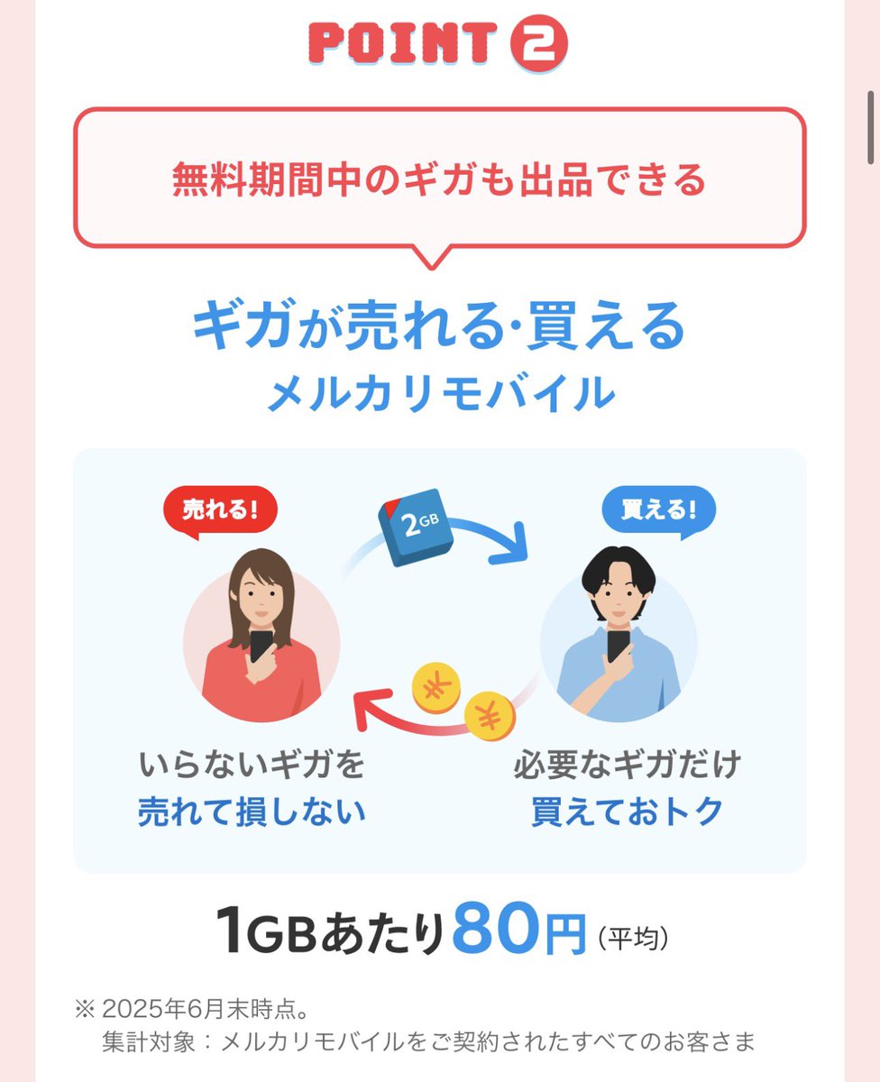 しかも無料期間中も使わないギガは売却できて、メルカリのクーポンやポイント還元優遇なども付いてくる🤔