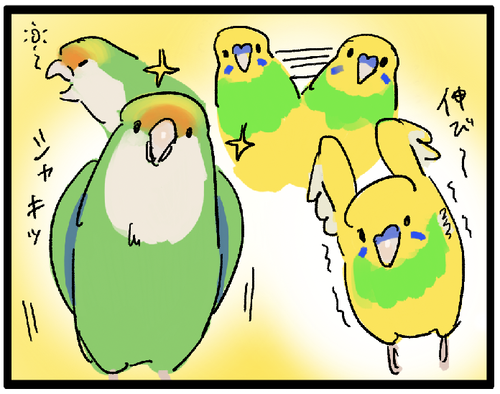 どんどん鳥カゴが大きくなっていく飼い主の心理 可愛いおもちゃで遊んでるところ……見たいじゃん!!(※遊んでくれるとは限らない)お店のペットホテルでお預かりした鳥カゴを見ると、小型インコ一羽だけなのにめちゃくちゃデカいカゴ(具体的に言うとHOEI465くらい)にたくさんのおもちゃと一緒に暮らしている子が居たりして ... 続きを読む 2021年04月30日