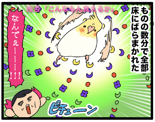 オカメインコ、食への執着がすごい もうめちゃくちゃジト目でこっち見てて怖かった普段きゅるきゅるのまんまるお目目なのにこの瞬間だけジト目でこっち見てた▼オカメインコの別の漫画 ン"ーーーーーー!!!!▼オカメ、不動の人気! オカメのサイズ感、いいよねぇ!おかめたまにめちゃくちゃ恰幅の良いオカメ、お ... 続きを読む 2022年03月29日