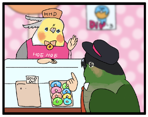 【羽やすめ漫画】雑貨によくいる謎インコ、現る キミは一体………………誰なんだ…………!!!続き ▼前回の羽やすめ漫画 街で一番人気!ホエホエドーナツ▼羽やすめ漫画バックナンバー まとめ読みできるかも!おまけ設定ハチミツボイス!ホンセイの仲間のおしゃべり声はとっても可愛いのです。▼クリックよろしくね! ... 続きを読む 2023年06月19日
