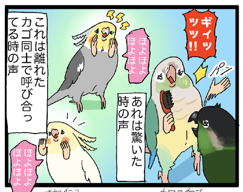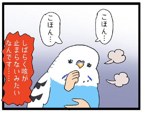 インコが咳をしてると思ったら……!? インコと咳について聞かれたりする機会が多いので描きましたインコの咳(本物)は病気が隠れてる場合があるので、病院に連れて行ってあげましょう!実は冬ごろからカチョがずっと咳を繰り返していて何度か通院して投薬をしているのですが原因がわからず…………ここ数ヶ月は様子 ... 続きを読む 2023年06月20日