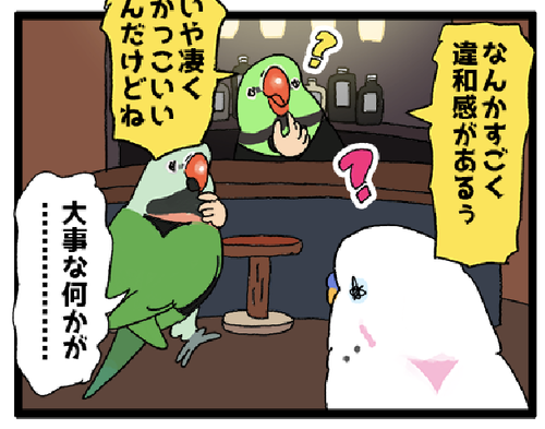 【羽やすめ漫画】冠羽がないオウムはただの…… 〜終〜 ▼このお話を最初から読む その2 その3冠羽を切られたことは誰一人として気付かなかったようです。よかったね!▼羽やすめまんが バックナンバーをよむ 明日12時からSUZURIで一部のアイテムが安くお買い求められるSALEが始まるようです!日曜日くらいにグッズを追加するの ... 続きを読む 2023年07月28日