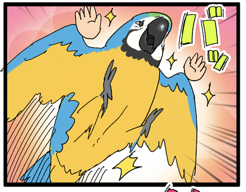 顔面に飛びかかってる1kgの大型インコ!!!! 鳥カゴ越しとはいえ1kgの鋭い爪を持った鳥が顔と同じ高さに飛びかかってくるの、ちょっと怖いかも!!でも上手に抱き止めてあげたい気持ちもある🫶自分のこと、ずっとちいこい小鳥ちゃんだと思ってるんだなぁ🥰▼ルリコンゴウインコが登場する別のまんが 何を隠そう私はルリ ... 続きを読む 2023年07月17日