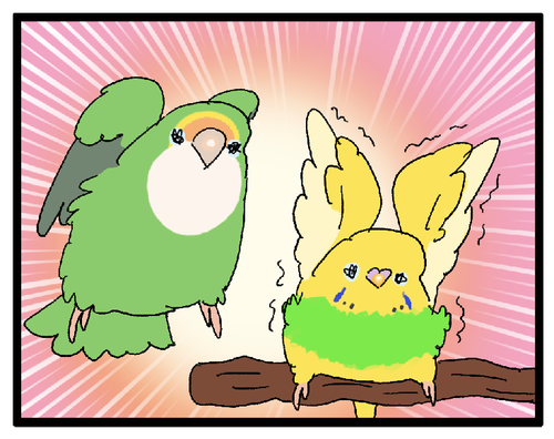 【ツンデレ♪】私のことが嫌いなインコちゃん、実は……♪ 期待しちゃったじゃん私にも優しくしてくれるかもって勘違いしちゃったじゃん………………でも(私以外の)人間は好きということがわかったのでOKです♪♪♪♪▼ズグロシロハラインコの別のまんが ↑の子は今回の漫画とは別の子なんだけど私ズグロに嫌われすぎてる……?(なぜ ... 続きを読む 2023年09月26日