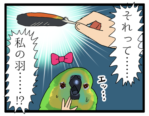 【なぁぜ】抜けた自分の羽を怖がるインコちゃん おもちゃとか差し出されても無反応だったりするのに、これが羽になると怖がるのは……なぜ……!?いじわるのつもりじゃなかったんだよ〜😭長物持ってる生き物ってなんだか良い▼インコの羽のまんが これであなたも知っタカスでもさ要らんが………………【高柳明音×えるぽぴ ... 続きを読む 2023年09月19日
