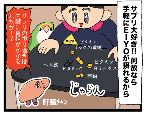 栄養サプリ、飲んだ瞬間に飲んだという記憶が消える ビタミン剤ODすな〜〜☝️💦お手軽に栄養がとれて便利でついつい色んな種類のものを飲んじゃう。普段の食事だけでバランスよく栄養摂るの難しいよ〜〜!▼ヘム鉄逆噴射 ヘムゥー!!!!▼臓器が登場する別のまんが 最近胃チャンのご機嫌がよろしくて、プロテインを飲んでも胃痛があま ... 続きを読む 2023年09月29日