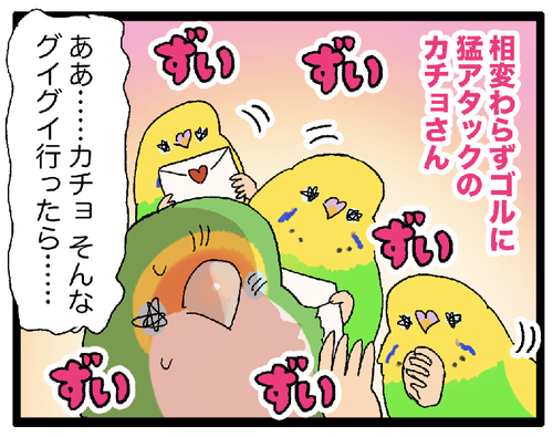 【自業自得】カチョ、落ち込み━━ もしかしてゴルが怪我させちゃった……?!と思って焦ったけど、シンプルに落ち込んでただけだった。ゴルカチョを同時放鳥する時に気をつけてることハッピー同時放鳥ライフ!▼ゴルちゃんがフられる方の漫画 程よい接し方、未だわからず━━Amazon / アニメイト(特典あり)am ... 続きを読む 2024年02月19日
