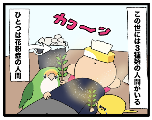 この世には3種類の人間がいます━━ 認めて楽になろう!!!!!!あなたはもう立派な…………………… 先日の漫画、わかられた(気の毒に…………)▼日常カテゴリの別のまんが Amazon / アニメイト(特典あり)ヨヤク タクサン オレ ウレシイ先日の漫画やXのリプライで頂いた花粉対策の有益情報をいくつかまとめ ... 続きを読む 2024年03月22日
