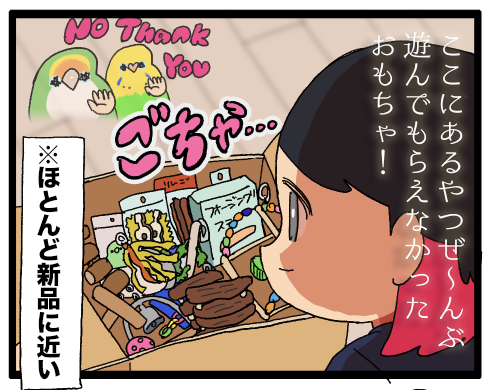 一生増えていく鳥のおもちゃ 我が子がおもちゃで遊んでくれないってわかってても飼い主はこのおもちゃなら遊んでくれるかも……!と祈るような気持ちで新しいおもちゃを買ってきてしまうのです………………使ってくれるまで捨てるのは忍びないので、永遠におもちゃが溜まっていくよ!!▼怖がりエル ゴ ... 続きを読む 2024年07月19日