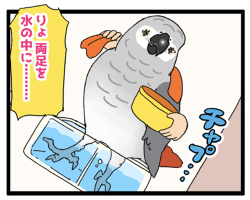 ちょっと変わった水浴びをする子、おった 水入れが狭い、とかではなくただただ両足だけの足湯しかしない子だった……🧐基本水浴び好きな鳥さんでも、濡れたくない子や頭だけは濡らしたくない子とか様々な子がいる!▼水浴び関連のまんが 鳥が水浴びをしていると鳥飼いは嬉しい。なぜなら可愛いのでぼやき図録も買っ ... 続きを読む 2024年12月20日