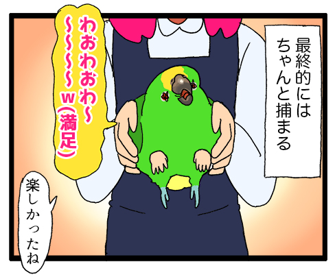 【店員と鬼ごっこ】ボウシインコ、大冒険 わうわうわ〜〜〜〜〜!!!(楽)(煽)鳥さんが楽しければOKです♪♪👍ボウシインコは基本的にラテン的テンションの高さなので一緒に遊んでて楽しい!たまに賑やかすぎてやめてーーっ!になるけど……笑😍▼ボウシインコたちのまんが基本陽キャで可愛いおまけ▼クリックよろしくね ... 続きを読む 2024年12月27日