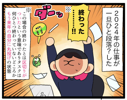 自由業の仕事はおさまるところを知らない ひと段落したが、収まったとは言っていない━━家で仕事ができると休日と平日のメリハリがなくなってよくないよね。ひと段落したとは言っても年明けに爆速で出さなきゃいけない仕事はあるし、結局大晦日も元旦もお仕事してると思います。絵いっぱい描けて楽しいねぇ!!!! ... 続きを読む 2024年12月30日