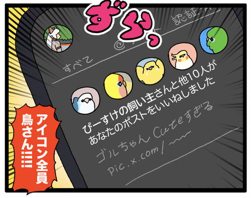 鳥さんもSNSをやる時代なのかもしれない 実際鳥だけどXやってるよって鳥、いるのでは?フォロワーさんの中にはもちろんアイコンがイラストや風景写真だったりとかする方も多いんだけどそんな中で偶然愛鳥さんの写真アイコンがずらっと並ぶとめちゃテンションが上がる……w一度だけ黄セキセイインコ写真のロイヤルス ... 続きを読む 2025年05月30日