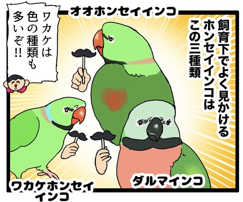 これがギャップ萌えってやつ……! お髭やクールなお目目が特徴的なインコなのにおしゃべりする時の声が本当に可愛い!ギャップが良い。是非検索して聞いてみてください!▼関連のまんが ワカケホンセイインコの漫画⤵️ おまけワカケホンセイインコのわさびっちょちゃんが昔から好きでずっと見てます。是非聞 ... 続きを読む 2025年05月17日