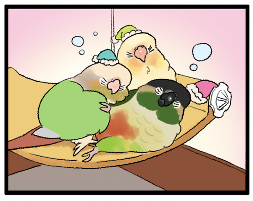 シロハラインコちゃんのロミジュリルーティン シロハラインコってどちらかというと"陽"の部類だなぁって思うんだけど、好奇心旺盛な子が多いウロコインコちゃんと気が合うのかも……?お外でたくさん遊ばせてあげたいけど、何時間も出してあげられないんじゃよ……🥸▼シロハラとウロコのまんが ⤴️の漫画の子とは別個体 ... 続きを読む 2025年06月25日