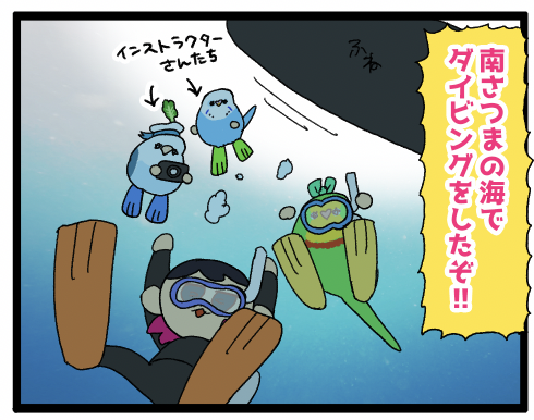 【鹿児島DAY②】ダイビング🤿水中編 友人の浜焼きマイケルコースと鹿児島でダイビングしたよのレポ 漫画の中では省略しているけど背中に酸素ボンベや体重と同じくらいの重りをつけているのでじっとしていると全然バランスがとれなくて横転しそうになる!!!あと足につけるフィン(水かきみたいなやつです)もなか ... 続きを読む 2025年07月16日