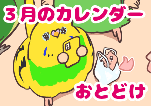 📅3月のカレンダーをお届け‼️ こんにちは、えるぽぴです。今日は先月に引き続き2月のカレンダーをお届けいたします。ぜひスマホの待ち受け等に使ってくださいね!▼縦長のサイズ(19.5:9)▼ちいちゃめサイズ(16:9)(春が訪れるということは、花粉が飛ぶということ……)文字の可読性がいつもより低くても申し ... 続きを読む 2026年02月28日
