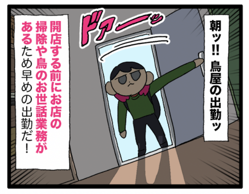 鳥屋出勤 朝のルーティン📣🦜✋ ※現在鳥屋の出勤はおやすみ中です他の店員さんよりも早く出勤する時があるのですが、その場合初めに挨拶をしてくれるのは、おしゃべりインコちゃんという━━😉▼鳥屋さん関連のおすすめまんが カチョさんの家この後空き巣をしていました🧐▼クリックよろしくね! ... 続きを読む 2026年01月08日
