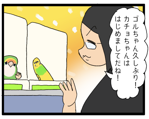 カチョちゃん、人見知りをちょっと克服……? 人見知りの鳥さん、色んな人に構ってもらうことでトレーニングになるので積極的に触ってもらいたい……!てなしさんとカチョは何度か会ったことがあるのですが、カチョが最近まですっごくビビっちゃってた…………けど!今回泊まりに来てくれた時にカゴの近くまで寄ってきて ... 続きを読む 2024年11月10日