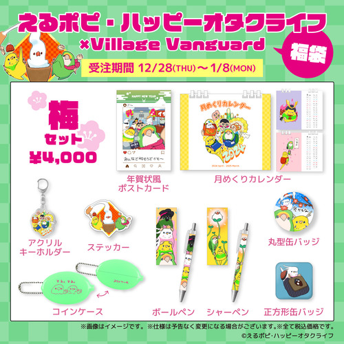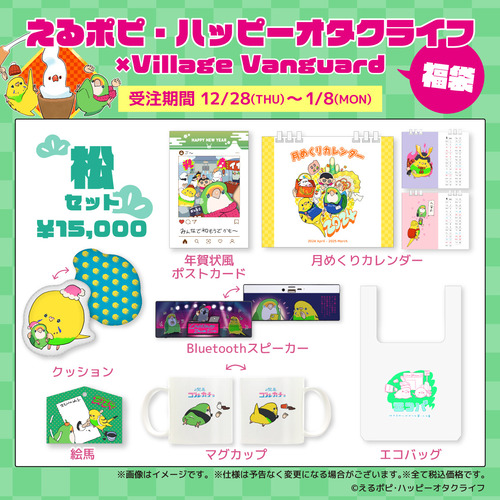 えるぽぴ×ヴィレッジヴァンガード コラボ福袋受注開始! でた〜!!【えるぽぴ×ヴィレッジヴァンガード コラボ福袋2023】本日19時から受注開始!!🐣特設ページ🐣(受注期間:2023年12月8日〜2024年1月8日 23:59)2024年2月下旬〜3月上旬お届けだそうです。松・竹・梅の3コースがあって、それぞれに共通のグッズ(日月めくりカレンダー ... 続きを読む 2023年12月28日