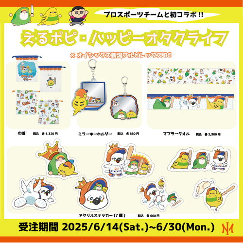 📢【⚾️コラボ】えるぽぴ×オイシックス新潟アルビレックスBC‼️ ▼販売ページはこちら 📣お知らせ📣こんにちは!えるぽぴです。今日は嬉しいコラボのお知らせ!!!このたび、新潟のプロスポーツチームオイシックス新潟アルビレックスBC様とのコラボグッズを販売することになりました……!巾着、ミラーホルダー、マフラータオル、アクリル ... 続きを読む 2025年06月05日